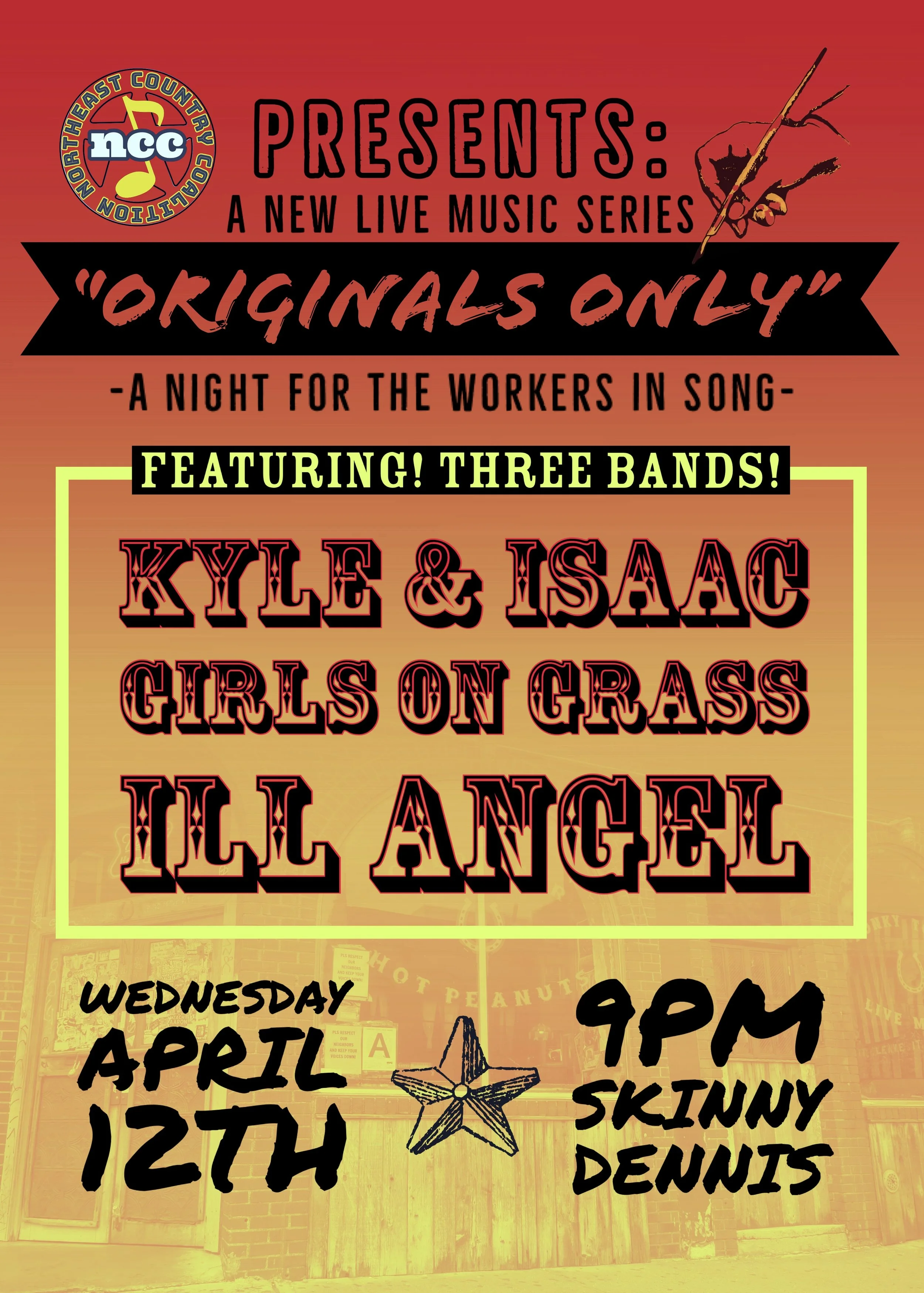 NCC Presents: Originals Only Wednesday, April 12, 2023 9:00 PM 21:00 Thursday, April 13, 2023 12:00 AM 00:00 Google Calendar ICS